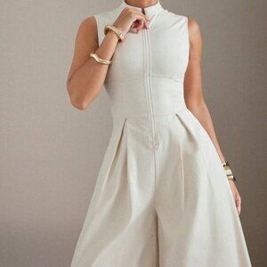 Apricot Elegant Women's Extreme Wide Leg Zip Front Sleeveless Jumpsuit