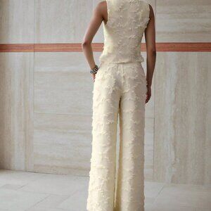 Apricot Elegant Women's Jacquard Button Up Vest And Pants Set