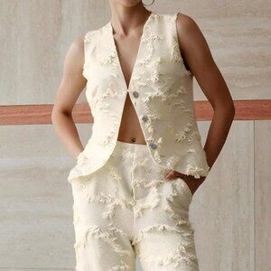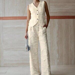 Apricot Elegant Women's Jacquard Button Up Vest And Pants Set