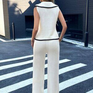 Apricot Elegant Women's Knitted Vest Sweater And Knit Pants Set