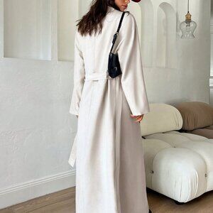 Apricot Elegant Women's Long Overcoat With Double-Breasted Buttons