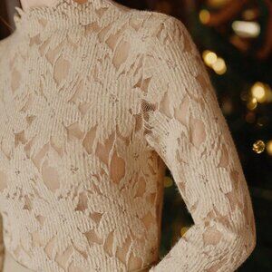 Apricot Elegant Women's Long Sleeve Hollow Out Stretchy T-Shirt