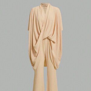 Apricot Elegant Women's Loose And Comfortable Textured Women's Set