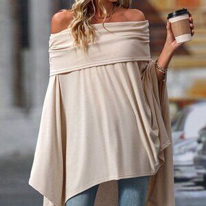 Apricot Elegant Women's Off Shoulder Asymmetrical Hem Tee
