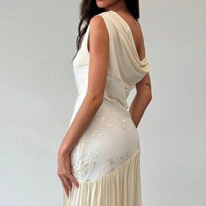 Apricot Elegant Women's Off Shoulder Mesh Floral Embroidered Maxi Dress