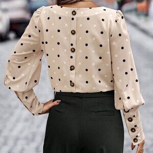 Apricot Elegant Women's Polka Dot Print Puff Sleeve Blouse