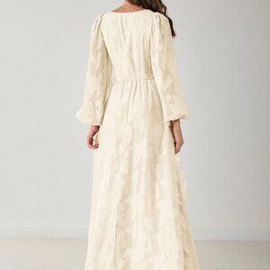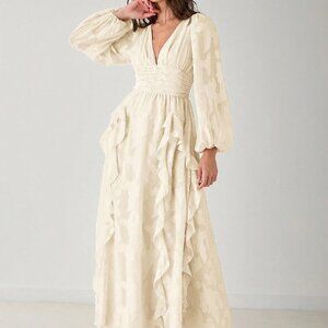 Apricot Elegant Women's Romantic V-Neck Ruffle Long Sleeve Maxi Dress