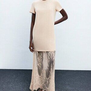 Apricot Elegant Women's Sexy Lace Spaghetti Strap Detachable Dress