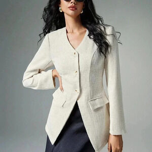 Apricot Elegant Women's Tweed Blazer With Wide Shoulders