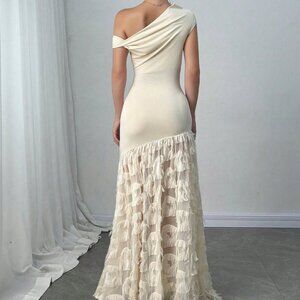 Apricot Elegant Women's Twist Shoulder Slim Fit Bodycon Fish Tail Jacquard Dress
