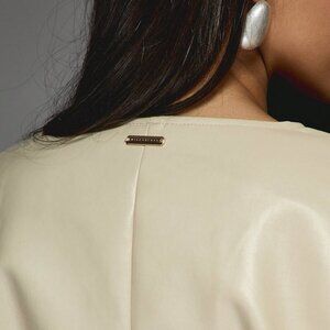 Apricot Elegant Women's Woven Fabric Buttoned Collarless Pintuck Long Coat