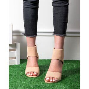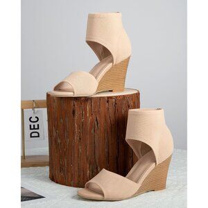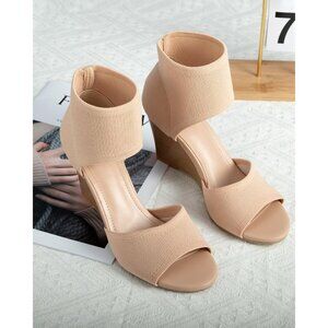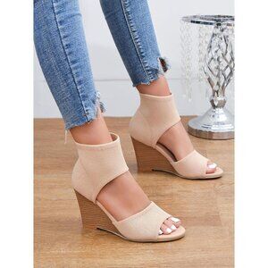 Apricot Fabric Wedge Sandal Elastic Knit Peep Toe Heels Sandal for Women Dressy