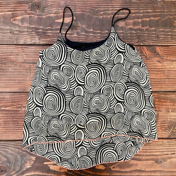 Fun summer tank with coral stitching at base. Sheer fabric with black sheer lining.
