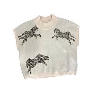 Apricot Leopard Print Sweater Size M Tan Brown Mock Neck Short Sleeve Top