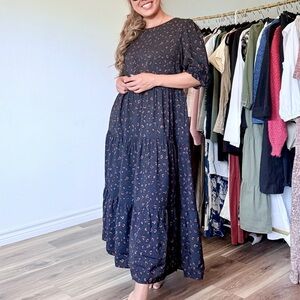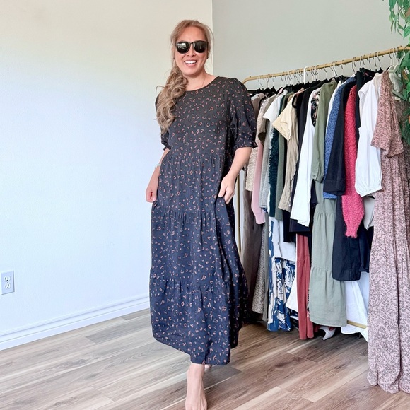 Step out in style with this elegant black patterned dress. Perfect for any occasion, this dress combines comfort and fashion effortlessly.