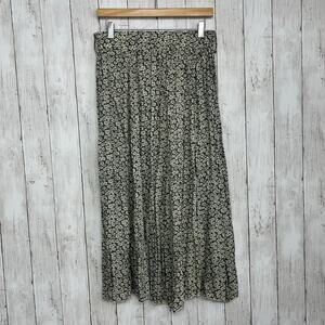 Apricot Pebble Daisy Green Floral Flowy Pleated Cottage Fairy Flared Maxi Skirt