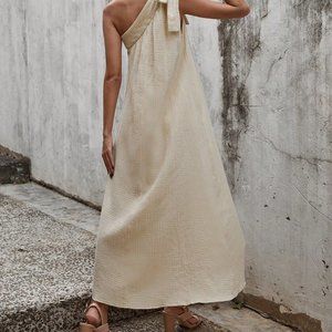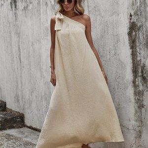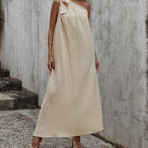 Apricot Preppy Womens One Shoulder Knot Side Dress
