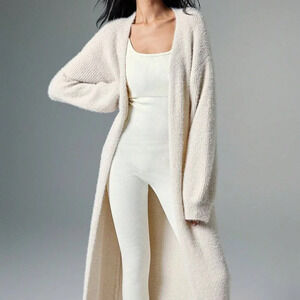 Apricot Preppy Women's Plush Extra Long Cardigan