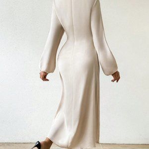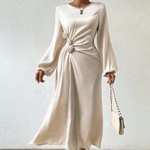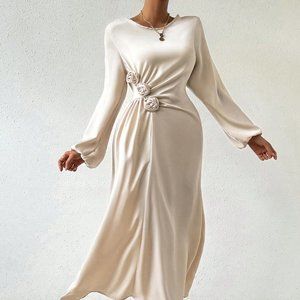 Apricot Preppy WomensWomen's Round Neck 3d Flower Decorated Lantern Sleeve Dress