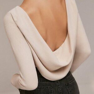 Apricot Sexy Women's Backless Long Sleeve Bodysuit