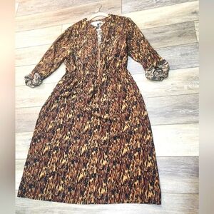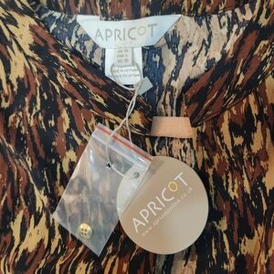 Apricot Texture Print Zip Midi Dress Size 10. New with tags. Perfect for spring and summer. Such a great dress. Nice and cool material and flowy with pretty brown tan and black colors and gold zipper detail. I'm a highly rated fast shipper.