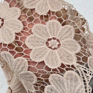 Apricot Women's Bohemian Music Festival V-Neck Hollow Floral Tassel Decor Shirt