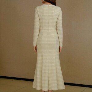 Apricot Women's Tweed Button Decor Bias Cut Dress