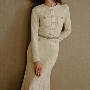 Apricot Women's Tweed Button Decor Bias Cut Dress