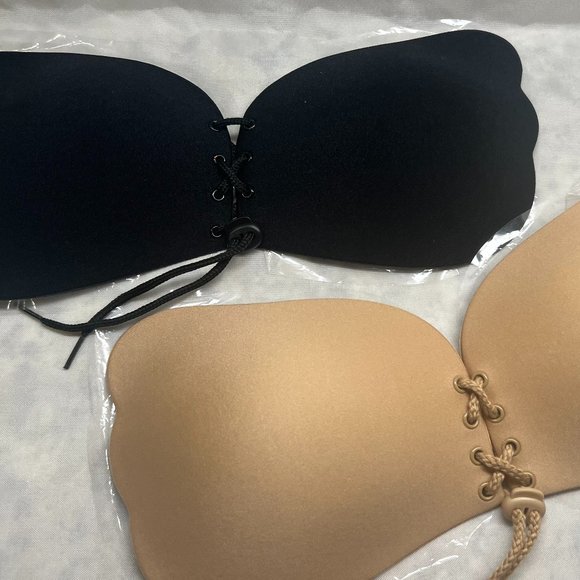 Features:The strapless silicone bra helps to push up your chest and keep your chest in a good position to prevent sagging.Drawstring closure design makes your breasts look fuller and more cleavage.