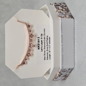 Elegant rose gold plated necklace featuring diamond cubic zirconia stones. Perfect for layering.