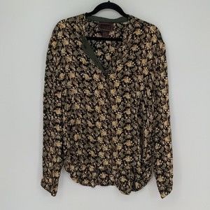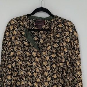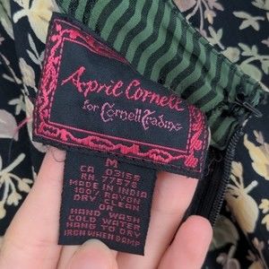 April Cornell 2 Piece Shirt Size Large Skirt Size Medium Black Floral Set