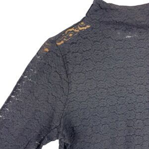 April Cornell Amelie Mock Turtleneck T-Shirt Floral Lace Black Sheer Size Medium