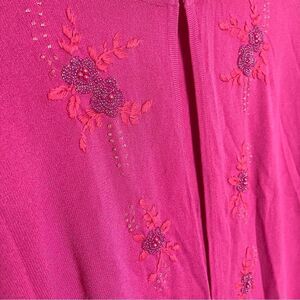 April Cornell Beaded Open Cardigan Large Pink Floral Embroidered Crochet Trim