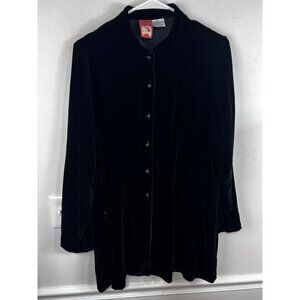 April Cornell Button Down Silk Velvet Black Medium Vintage Retro Lagenlook Tunic