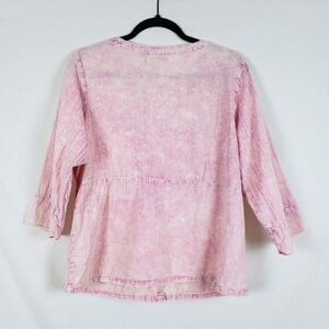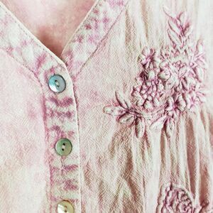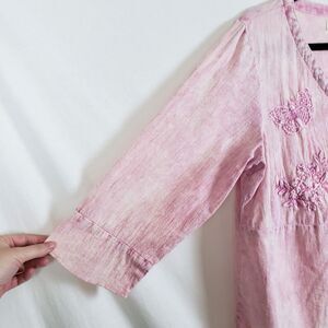 April Cornell Button Up Top Womens M Pink Split Hem Embroidered Butterflies