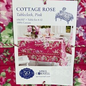 April Cornell Cottage Rose Pink Floral Tablecloth 60" x 102" Cotton NEW