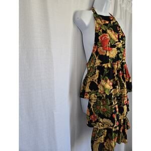 April Cornell Cotton Floral French Country Chef Apron Cottagecore Black Gold Red