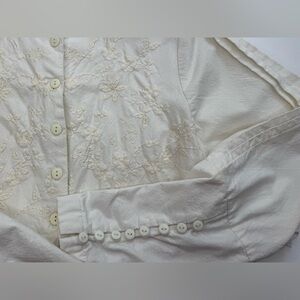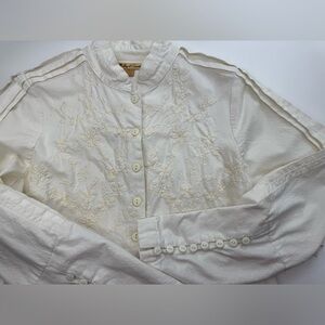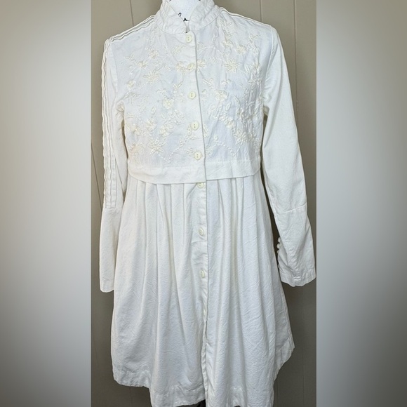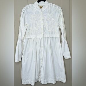 April Cornell Embroidered Heavy Thick White/Cream Indian Cotton Long Sleeve Button Down Dress Womens Small