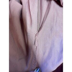 There is a small rip in the outer layer of the dress on the back right bottom side of the dress. Hem on the inside of dress near bottom of zipper the hem has come apart some. This does NOT affect the zipping or wearing of the dress. Small stains on the inside of the dress near neck tag and on the neck tag. Please see photos of issues noted above. Otherwise, in Good Pre-Owned Condition. Please see all photos.