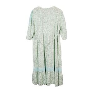 April Cornell Midi Dress Blue Green Pastel Floral Crochet Lace Trim V-Neck 2XL