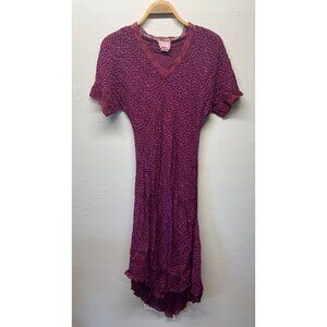April Cornell Midi Maxi Dress V-Shaped Hem Medium Burgundy Purple Dots Lace Fairy Dolman Sleeve Y2K