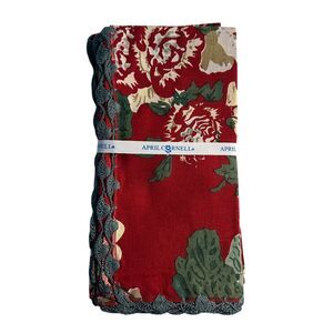 April Cornell Olivia Floral Napkins Set of 4 Red Green Crochet Trim Holiday NEW