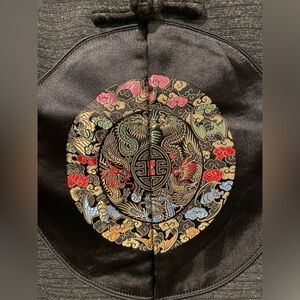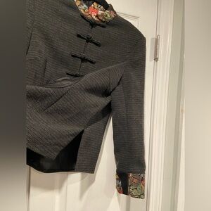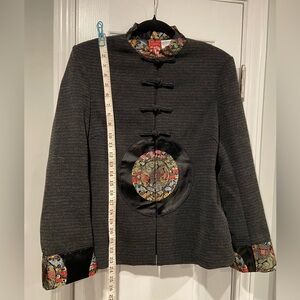 April Cornell Size S Asian Inspired Gray Blazer Silky Appliqué Rope Buttons