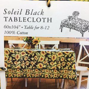 April Cornell Soleil Sunflower 60x104 Tablecloth Black Yellow 100% Cotton NEW