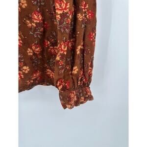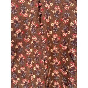 April Cornell Top Medium Floral Brown Button Retro Cottagecore Boho Peasant