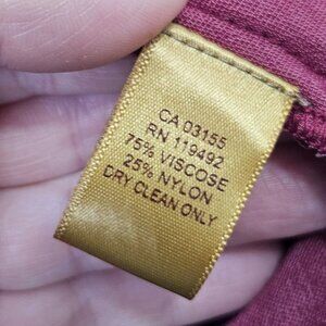 This elegant velvet dress by April Cornell features a rich magenta hue. Ideal for professional settings, its cap sleeve design and draping neckline offer a sophisticated yet comfortable fit. The luxurious blend of viscose and nylon ensures a soft and smooth texture, suitable for formal gatherings or office wear.
