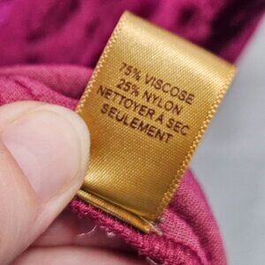 This elegant velvet dress by April Cornell features a rich magenta hue. Ideal for professional settings, its cap sleeve design and draping neckline offer a sophisticated yet comfortable fit. The luxurious blend of viscose and nylon ensures a soft and smooth texture, suitable for formal gatherings or office wear.