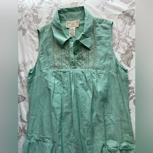 April Cornell Vintage Cotton Silk Sea Foam Green Swing Dress Small Cottage Boho
