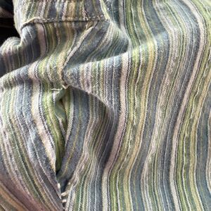 Pulling on the crotch as seen in the last picture. Crotch is double stitched so there is a pulling in the outer stitch not enough to form a hole