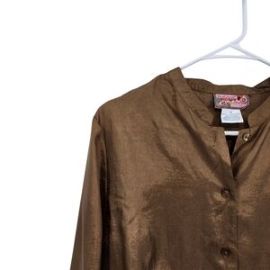 April Cornell Women's Poly Lightweight Satin Button Front Fit & Flare Gypsy Top